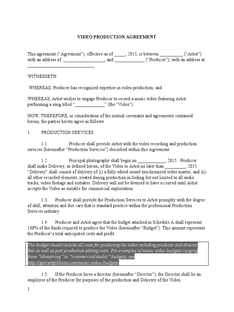 Music Video Production Agreement Pdf Breach Of Contract Indemnity